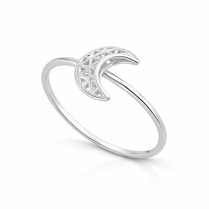Delicado e cheio de significado, o Anel Lua Vazado em Prata 925 é uma joia que simboliza intuição, feminilidade e renovação. Seu design em formato de lua crescente apresenta um elegante trabalho vazado com detalhes geométricos internos, criando um efeito moderno e sofisticado que valoriza ainda mais a peça.Confeccionado em Prata 925 legítima, o anel possui acabamento totalmente polido, garantindo brilho intenso e uniforme em toda a estrutura. O aro fino proporciona leveza e conforto no uso diário, tornando-o perfeito para compor combinações delicadas ou ser usado como destaque em produções minimalistas.