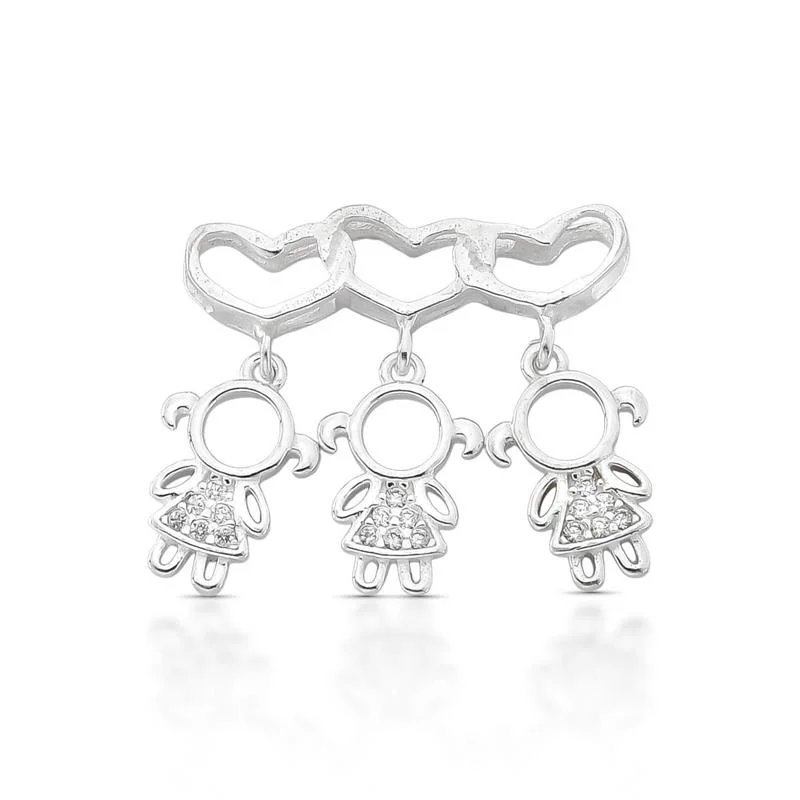 O Pingente 3 Meninas de Prata 925 é uma joia delicada e carregada de significado, criada para simbolizar amor, família e os laços eternos entre mães e filhas. Seu design apresenta três meninas pendentes, delicadamente suspensas por uma base formada por corações vazados, criando uma composição harmoniosa, leve e emocional.Cada menina possui acabamento minucioso, com aplicação de zircônias no vestido, que proporcionam brilho suave e um toque de sofisticação à peça. O acabamento polido valoriza os detalhes e garante uma aparência elegante e atemporal, ideal para uso diário ou ocasiões especiais.