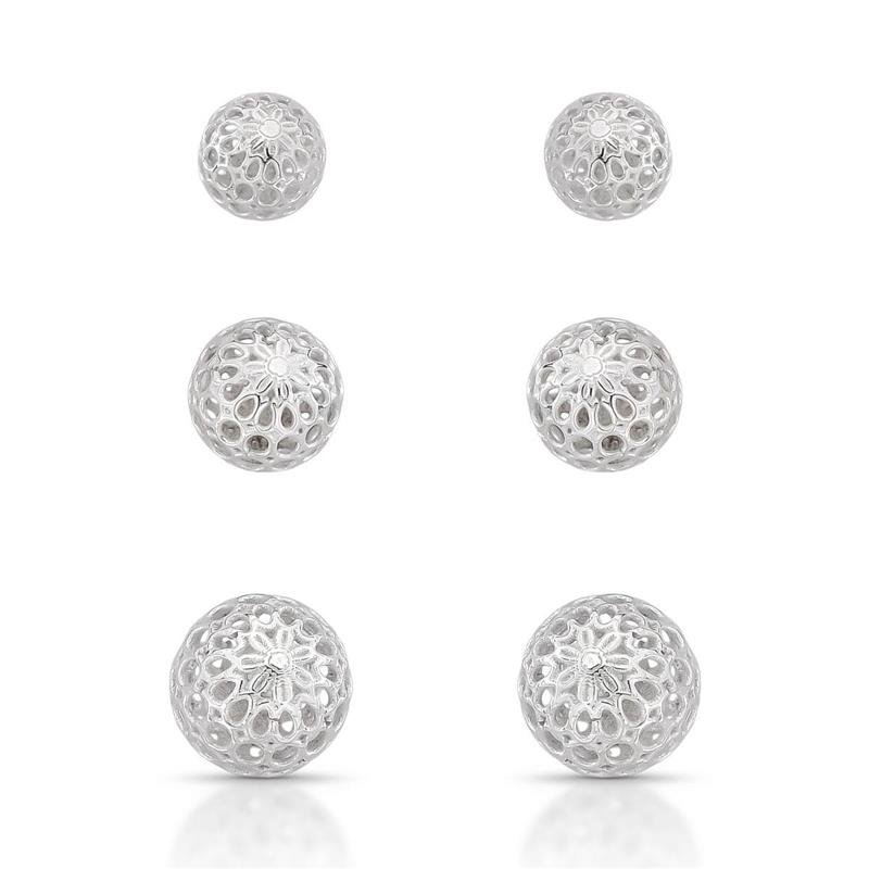 Brinco Esfera Trabalhada em Prata 925Este brinco em formato de esfera é confeccionado em Prata 925 de alta qualidade e possui um design vazado sofisticado, com detalhes em relevo que lembram uma renda metálica. A estrutura leve e delicada proporciona conforto ao uso diário, enquanto o acabamento brilhante valoriza ainda mais a beleza da peça. Perfeito para quem busca elegância com um toque moderno, disponível em trio com tamanhos pequeno, médio e grande para criar composições versáteis na orelha. .
